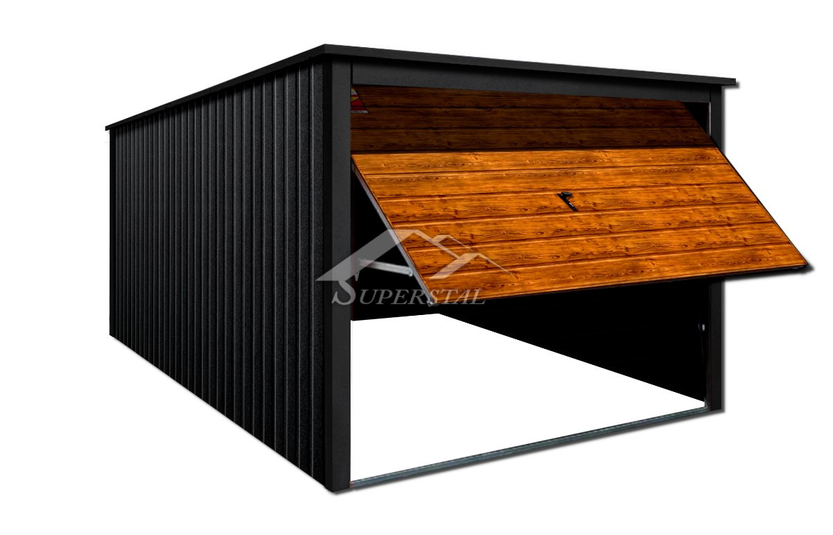GARÁŽ LUX 2×3 – SPÁD STRECHY DOZADU, VÝKLOPNÁ BRÁNA V DEKORE DREVA, KOVANIE OKOLO STRECHY A ROHOVAk hľadáte moderný dizajn a dôraz na najmenšie detaily, nenašli by ste lepšiu ponuku! Ponúkaným produktom je inovatívna plechová garáž zo série LUX s rozmermi 2×3.