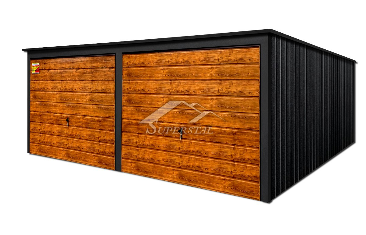 GARÁŽ LUX 6×4 – SPÁD STRECHY DOZADU, VÝKLOPNÉ BRÁNY V DEKORE DREVA, KOVANIE OKOLO STRECHY A ROHOVAk hľadáte moderný dizajn a dôraz na najmenšie detaily, nenašli by ste lepšiu ponuku! Ponúkaným produktom je inovatívna plechová garáž zo série LUX s rozmermi 6×4.