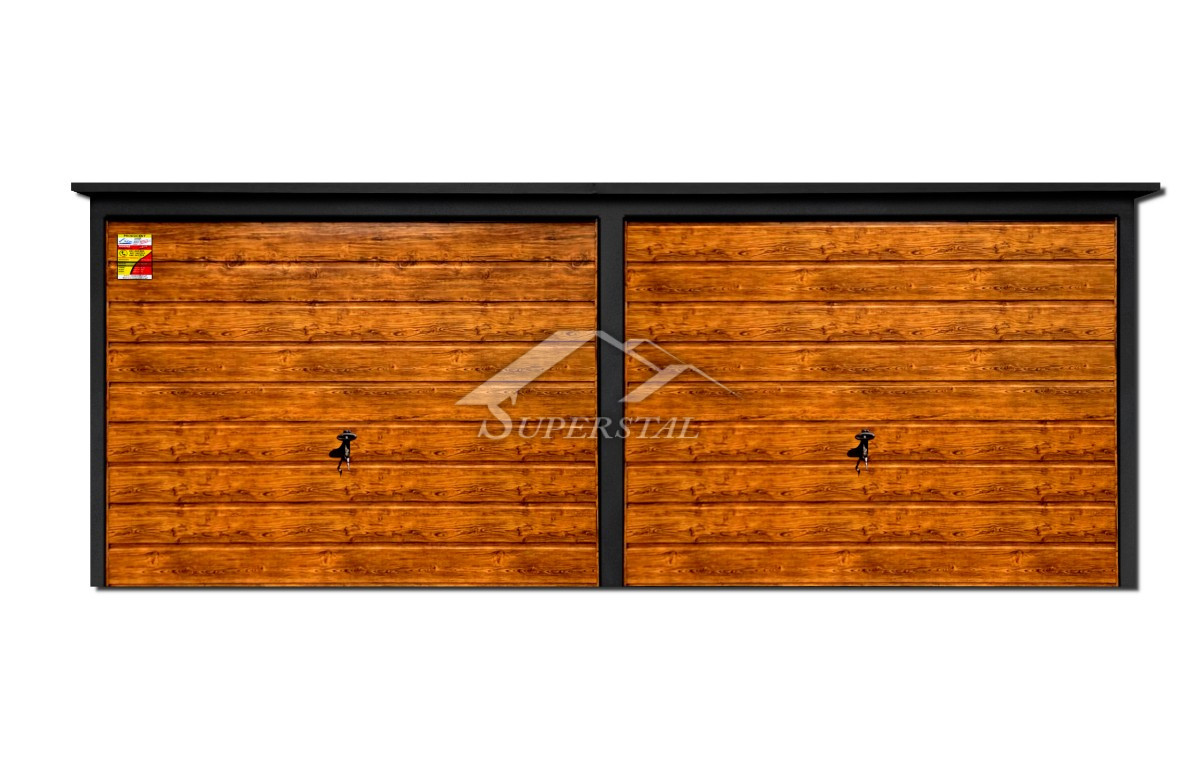 GARÁŽ LUX 6×5 – SPÁD STRECHY DOZADU, VÝKLOPNÉ BRÁNY V DEKORE DREVA, KOVANIE OKOLO STRECHY A ROHOVAk hľadáte moderný dizajn a dôraz na najmenšie detaily, nenašli by ste lepšiu ponuku! Ponúkaným produktom je inovatívna plechová garáž zo série LUX s rozmermi 6×5.