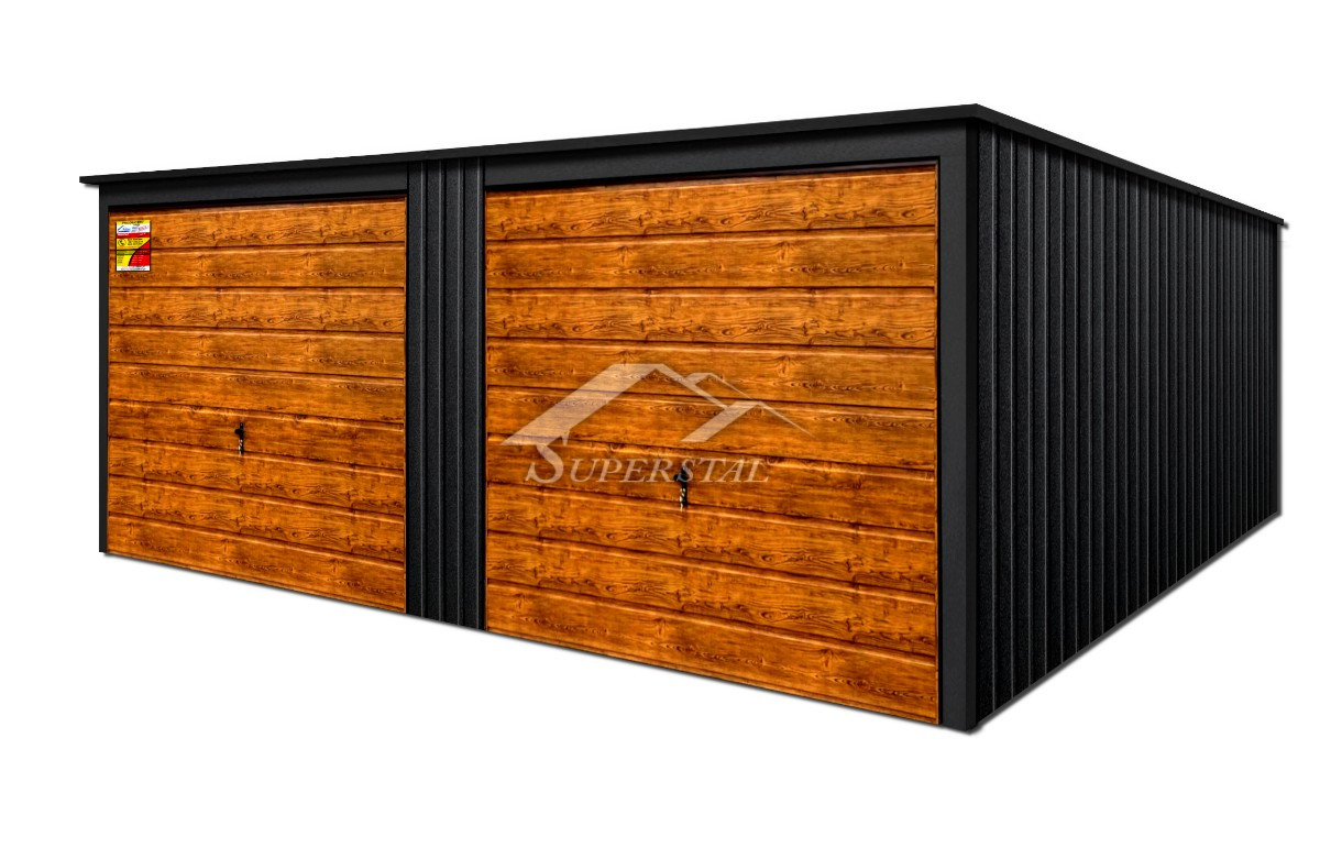 GARÁŽ LUX 7×7 – SPÁD STRECHY DOZADU, VÝKLOPNÉ BRÁNY V DEKORE DREVA, KOVANIE OKOLO STRECHY A ROHOVAk hľadáte moderný dizajn a dôraz na najmenšie detaily, nenašli by ste lepšiu ponuku! Ponúkaným produktom je inovatívna plechová garáž zo série LUX s rozmermi 7×7.