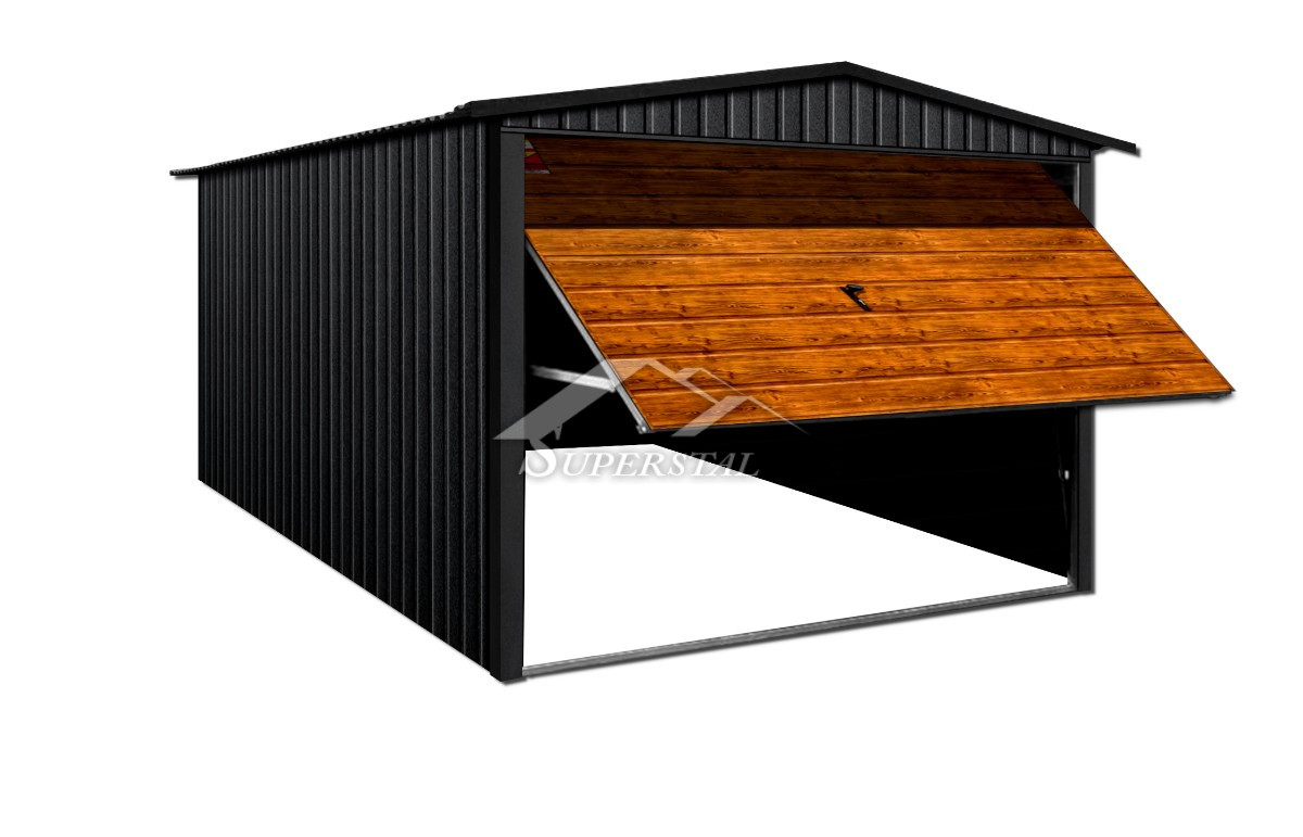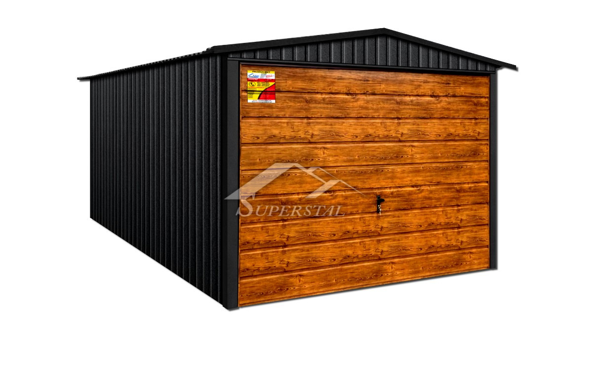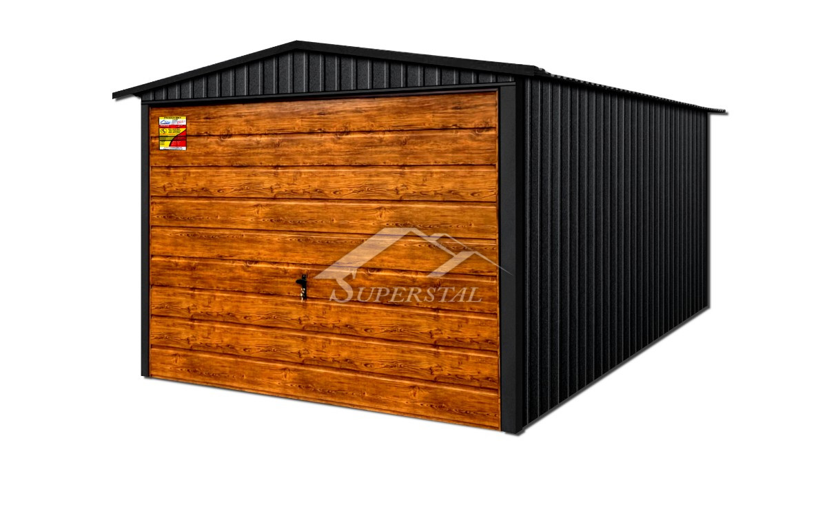 GARÁŽ LUX 2×5 – SEDLOVÁ STRECHA, VÝKLOPNÁ BRÁNA V DEKORE DREVA, KOVANIE OKOLO STRECHY A ROHOVAk hľadáte moderný dizajn a dôraz na najmenšie detaily, nenašli by ste lepšiu ponuku! Ponúkaným produktom je inovatívna plechová garáž zo série LUX s rozmermi 2×5.