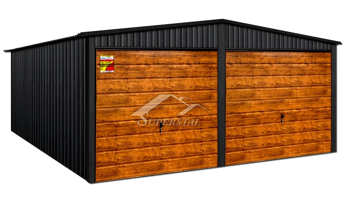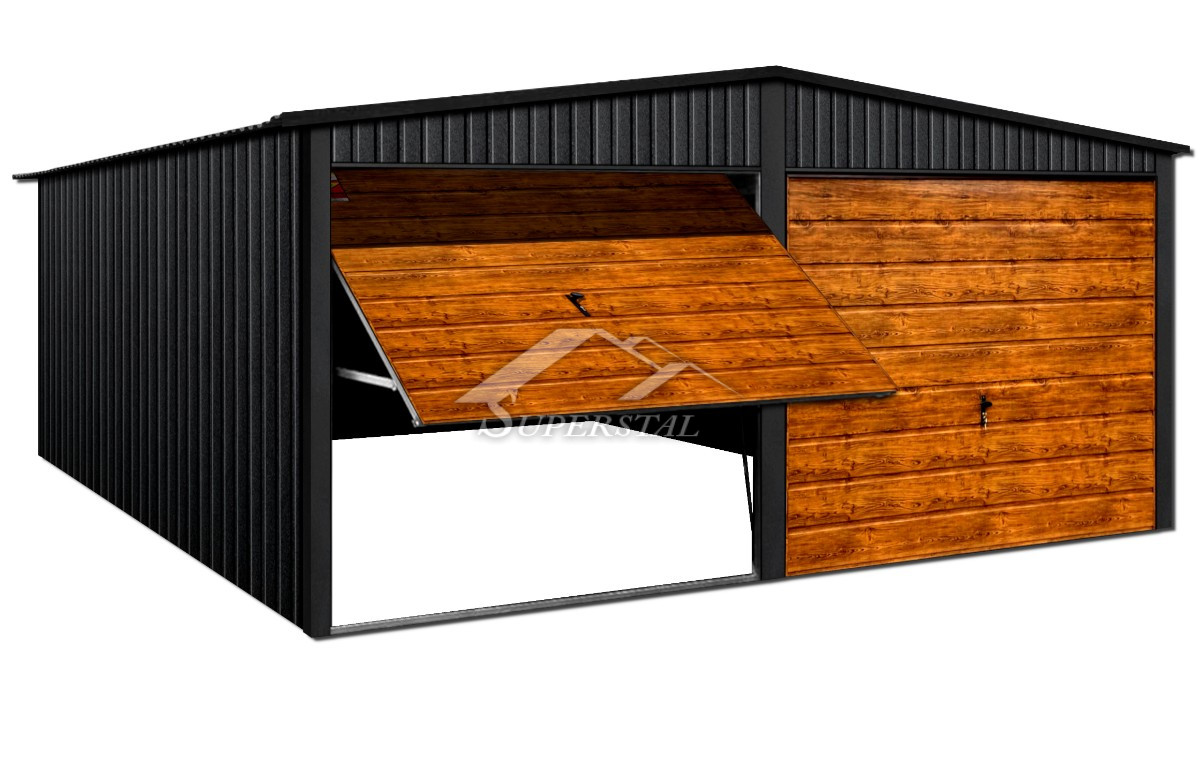 GARÁŽ LUX 6×5 – SEDLOVÁ STRECHA, VÝKLOPNÉ BRÁNY V DEKORE DREVA, KOVANIE OKOLO STRECHY A ROHOVAk hľadáte moderný dizajn a dôraz na najmenšie detaily, nenašli by ste lepšiu ponuku! Ponúkaným produktom je inovatívna plechová garáž zo série LUX s rozmermi 6×5.