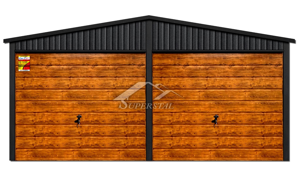 GARÁŽ LUX 6×8 – SEDLOVÁ STRECHA, VÝKLOPNÉ BRÁNY V DEKORE DREVA, KOVANIE OKOLO STRECHY A ROHOVAk hľadáte moderný dizajn a dôraz na najmenšie detaily, nenašli by ste lepšiu ponuku! Ponúkaným produktom je inovatívna plechová garáž zo série LUX s rozmermi 6×8.