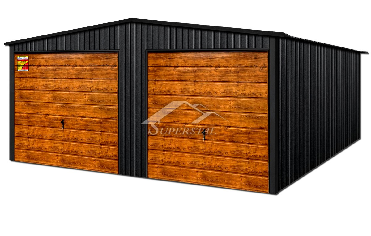 GARÁŽ LUX 8×6 – SEDLOVÁ STRECHA, VÝKLOPNÉ BRÁNY V DEKORE DREVA, KOVANIE OKOLO STRECHY A ROHOVAk hľadáte moderný dizajn a dôraz na najmenšie detaily, nenašli by ste lepšiu ponuku! Ponúkaným produktom je inovatívna plechová garáž zo série LUX s rozmermi 8×6.