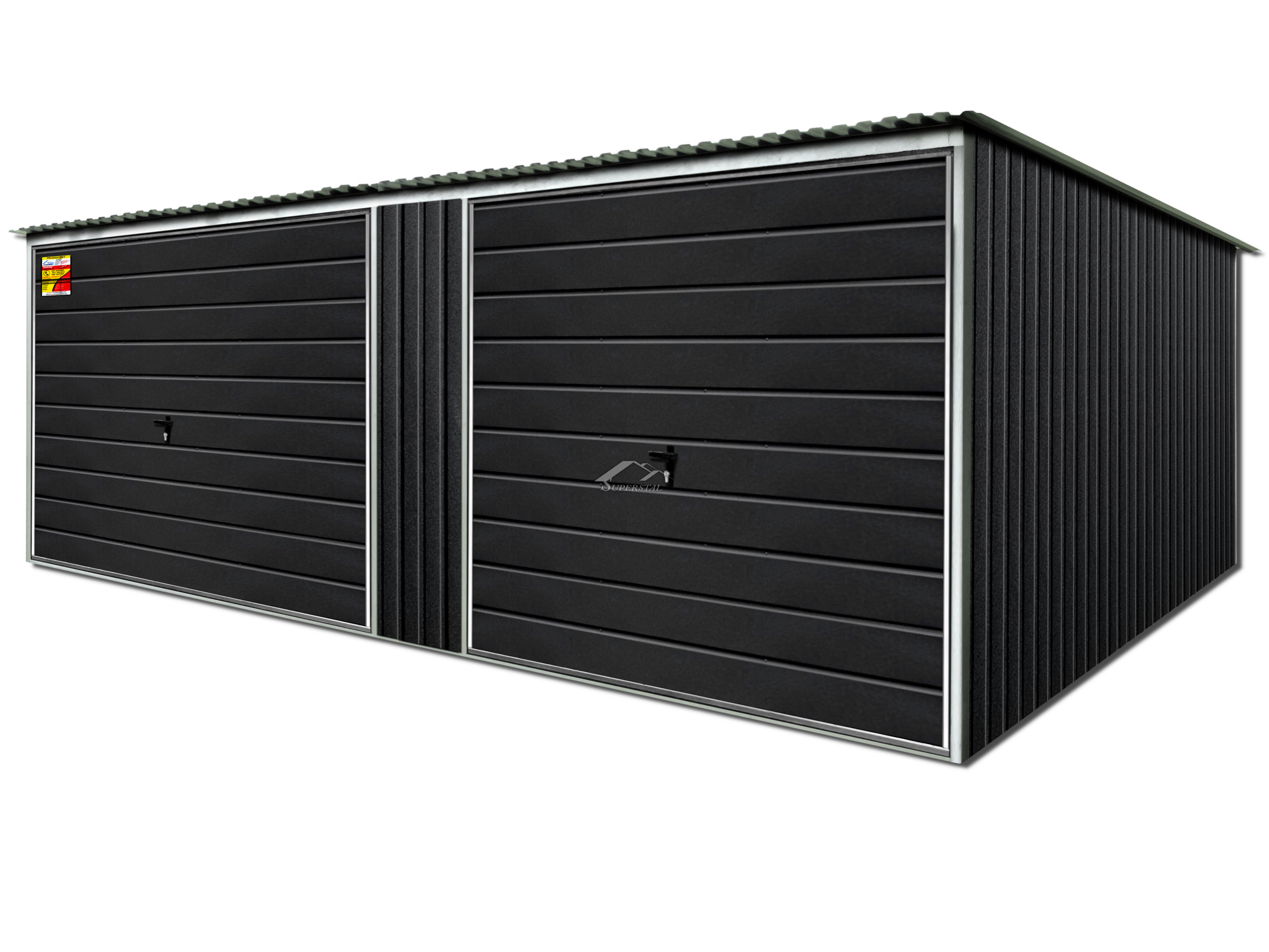 GRAFITOVÁ PLECHOVÁ GARÁŽ LUX 7X5 – SPÁD STRECHY DOZADU, VÝKLOPNÉ BRÁNY