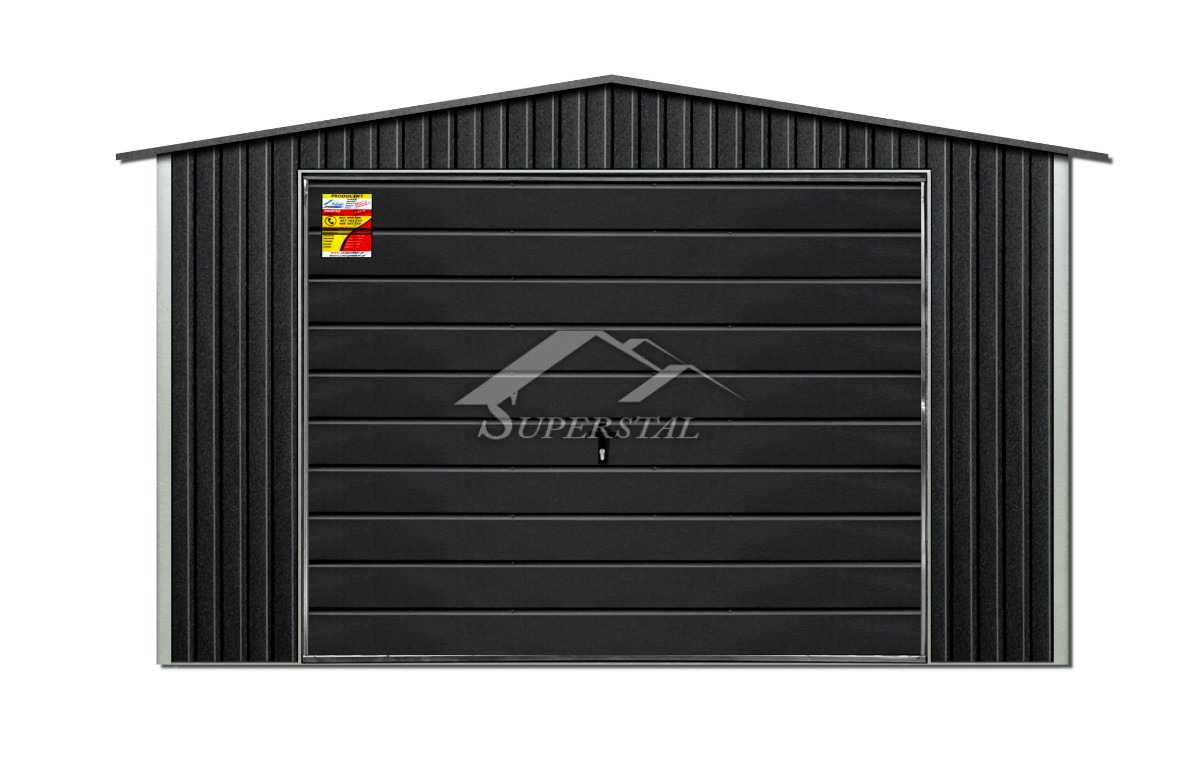 GRAFITOVÁ PLECHOVÁ GARÁŽ LUX 4×4 – SEDLOVÁ STRECHA, VÝKLOPNÁ BRÁNAAk hľadáte moderný dizajn a dôraz na najmenšie detaily, nenašli by ste lepšiu ponuku! Ponúkaným produktom je inovatívna plechová garáž zo série LUX bez kovania s rozmermi 4×4.