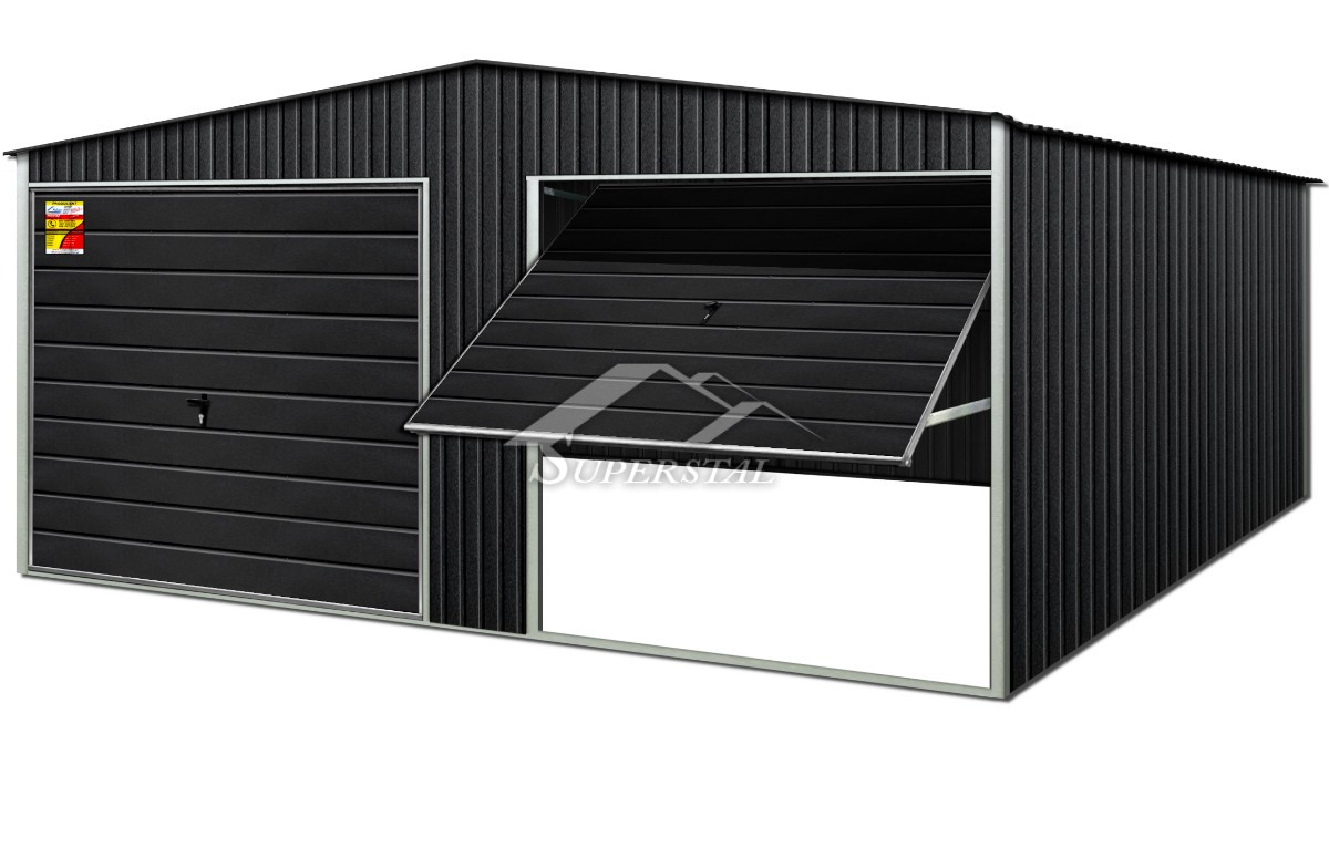 GRAFITOVÁ PLECHOVÁ GARÁŽ LUX 8×4 – SEDLOVÁ STRECHA, VÝKLOPNÉ BRÁNYAk hľadáte moderný dizajn a dôraz na najmenšie detaily, nenašli by ste lepšiu ponuku! Ponúkaným produktom je inovatívna plechová garáž zo série LUX bez kovania s rozmermi 8×4.