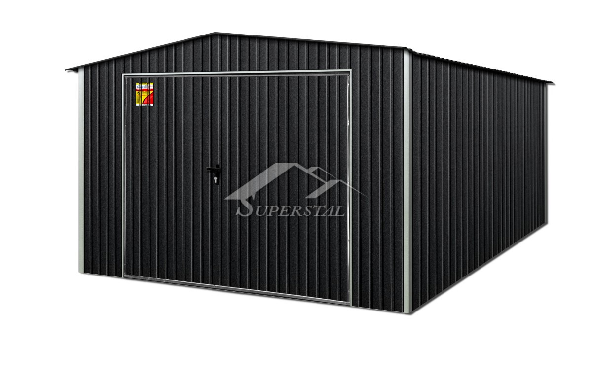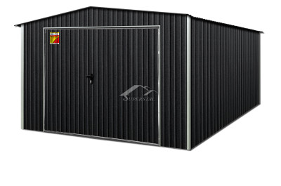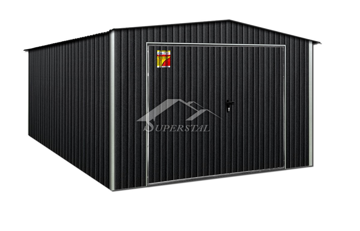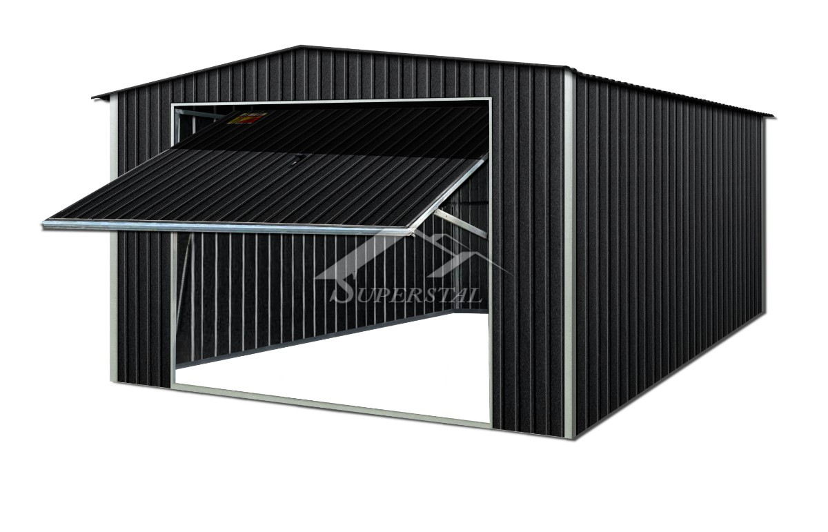 GRAFITOVÁ FAREBNÁ PLECHOVÁ GARÁŽ 4X5 – SEDLOVÁ STRECHA, VÝKLOPNÁ BRÁNA