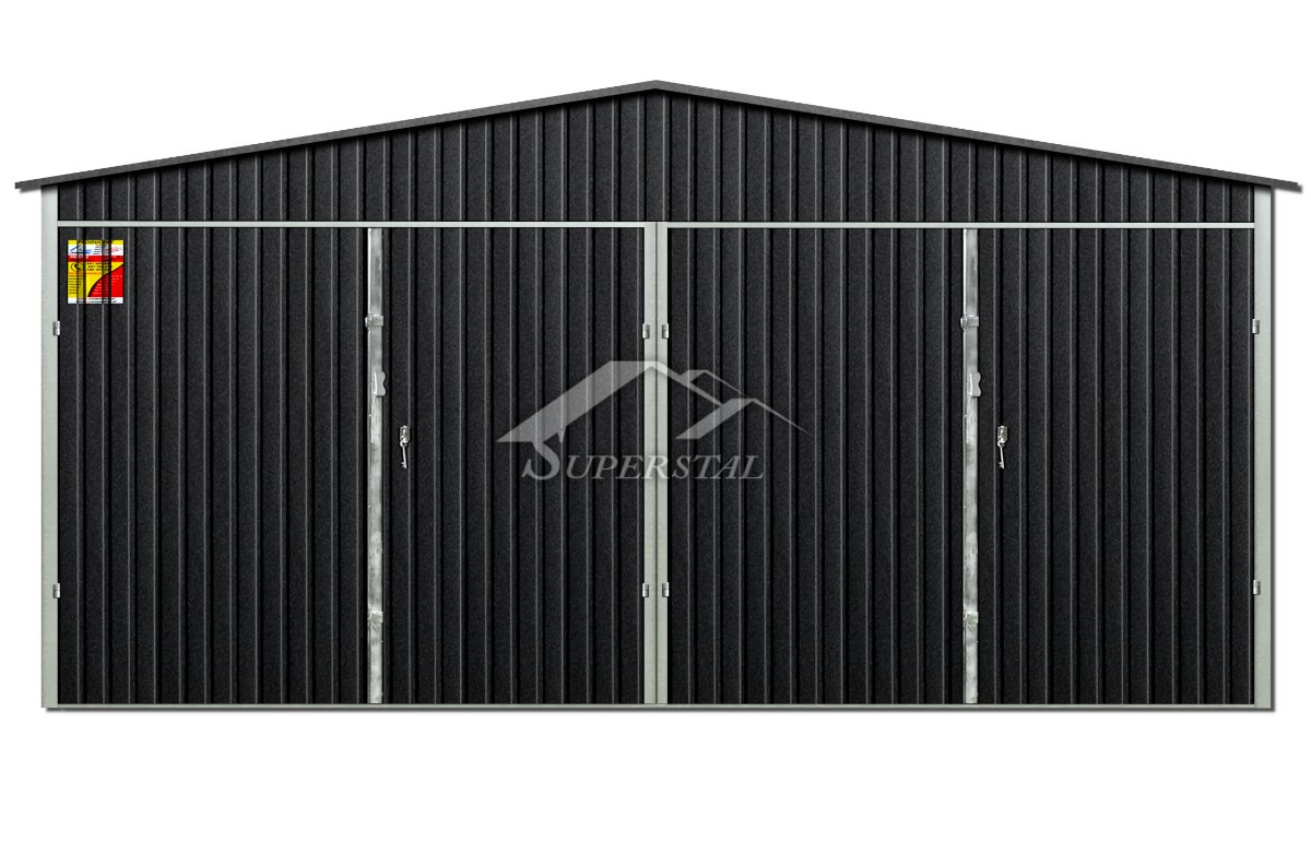 GRAFITOVÁ FAREBNÁ PLECHOVÁ GARÁŽ 6X5 – SEDLOVÁ STRECHA, DVOUKŘÍDLÉ BRÁNYFarebná plechová garáž je výbornou voľbou pre tých, ktorí hľadajú ekonomické riešenie a zároveň moderný vzhľad.