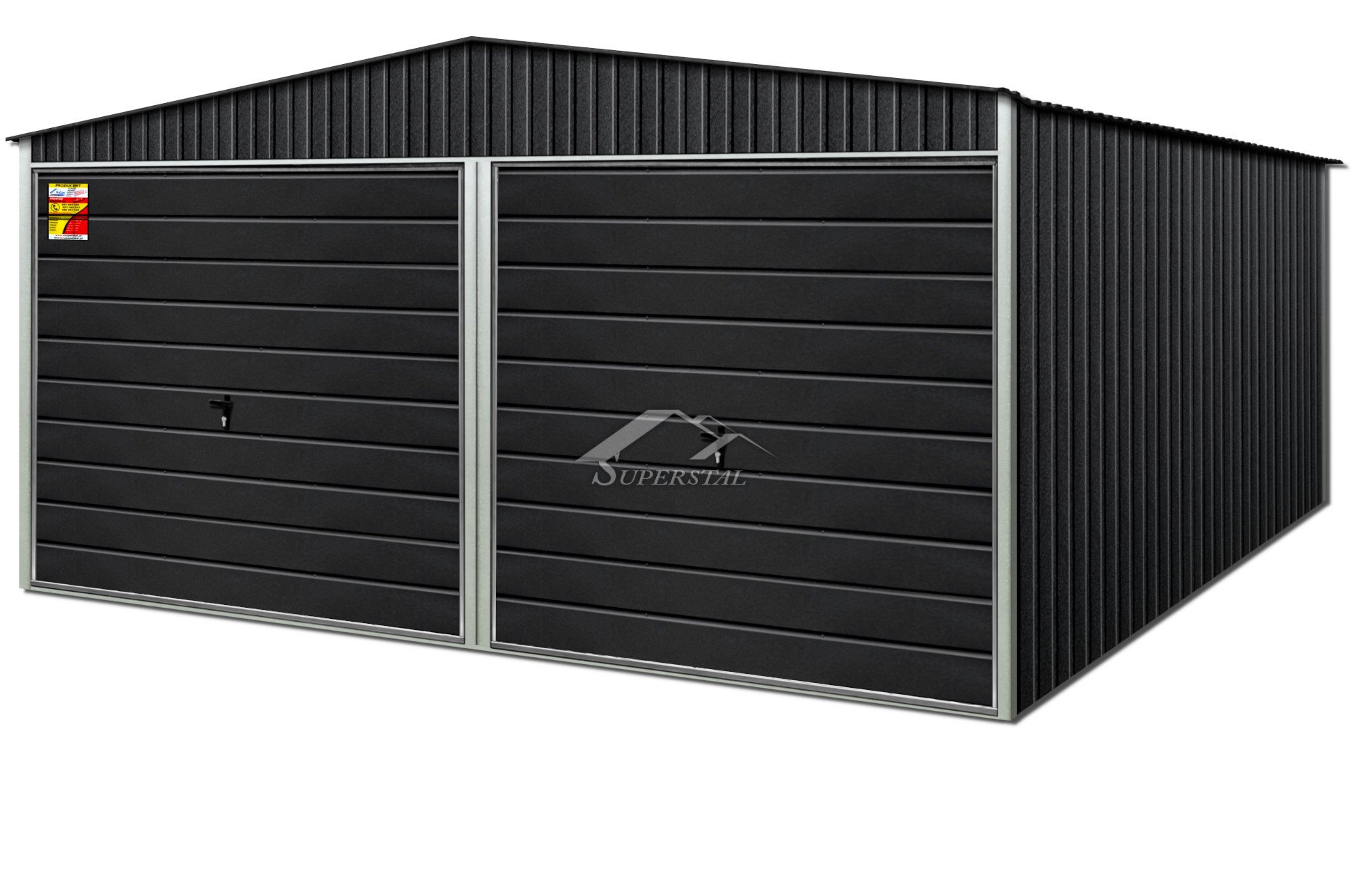 GRAFITOVÁ PLECHOVÁ GARÁŽ LUX 6X8 – SEDLOVÁ STRECHA, VÝKLOPNÉ BRÁNY
