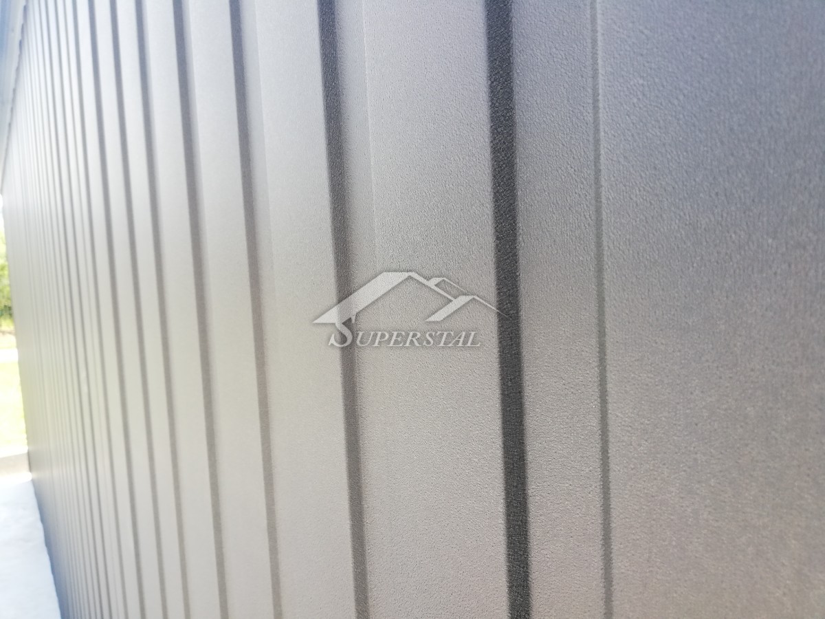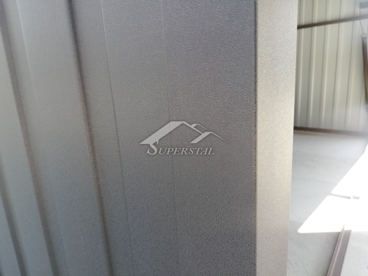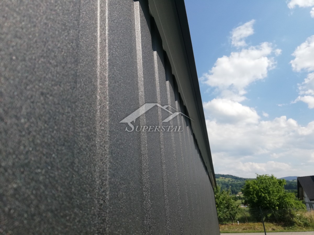 • na stenách trapézový plech – I. trieda vo farbe so zvislými prelismi